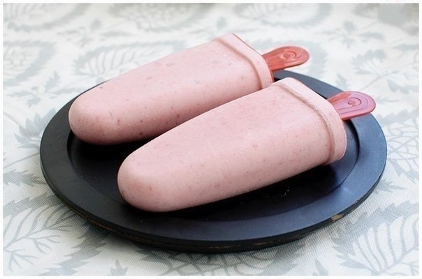 Добавить йогурт и мед. Хорошо взбить, должна получиться достаточно воздушная консистенция. Разложить по формочкам. У меня получилось 7 небольших эскимо. И поместить в морозилку минимум на 3 часа.